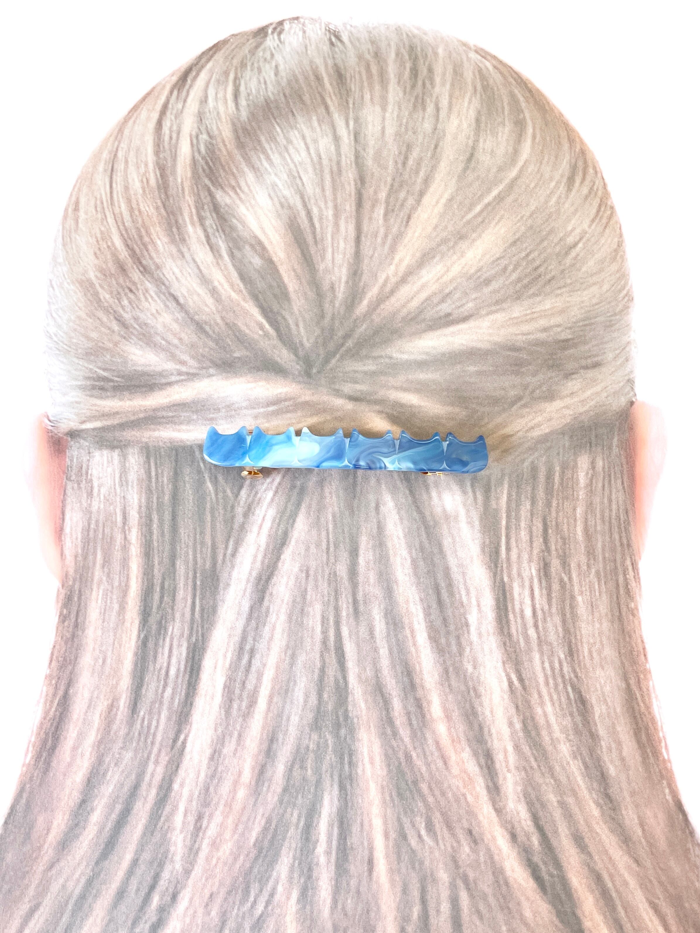 猫の顔が6匹ならんだ可愛いバレッタ。
