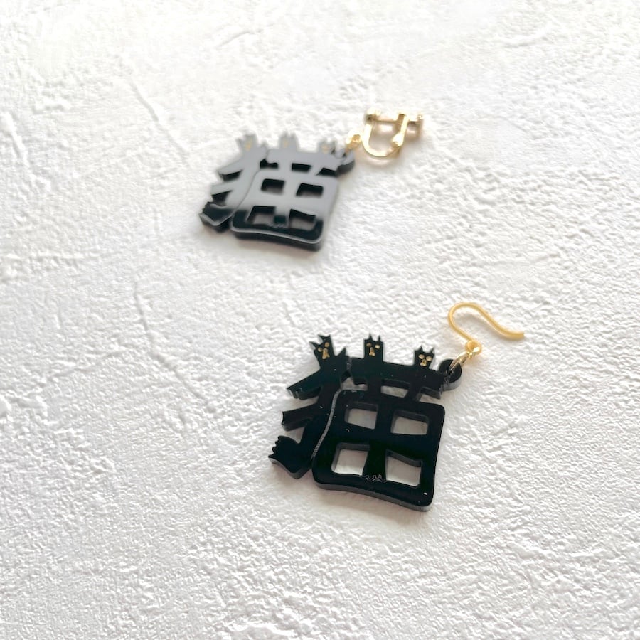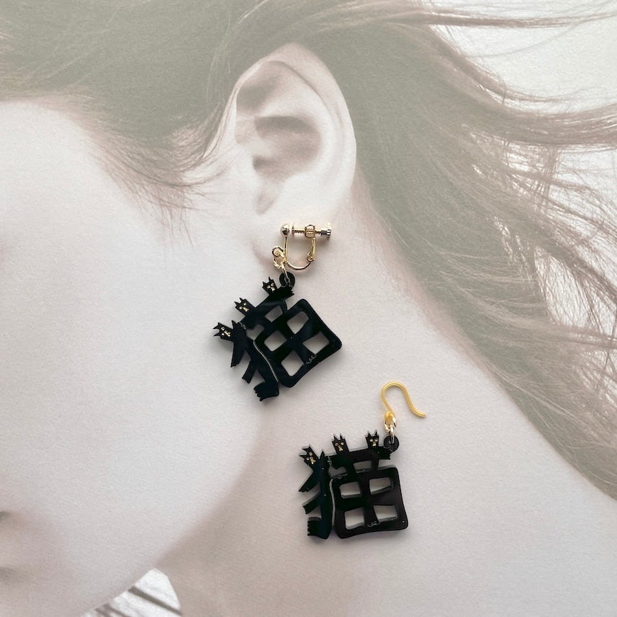 『ゆれる猫文字耳飾り』は、猫の魅力を存分に活かした耳飾り。