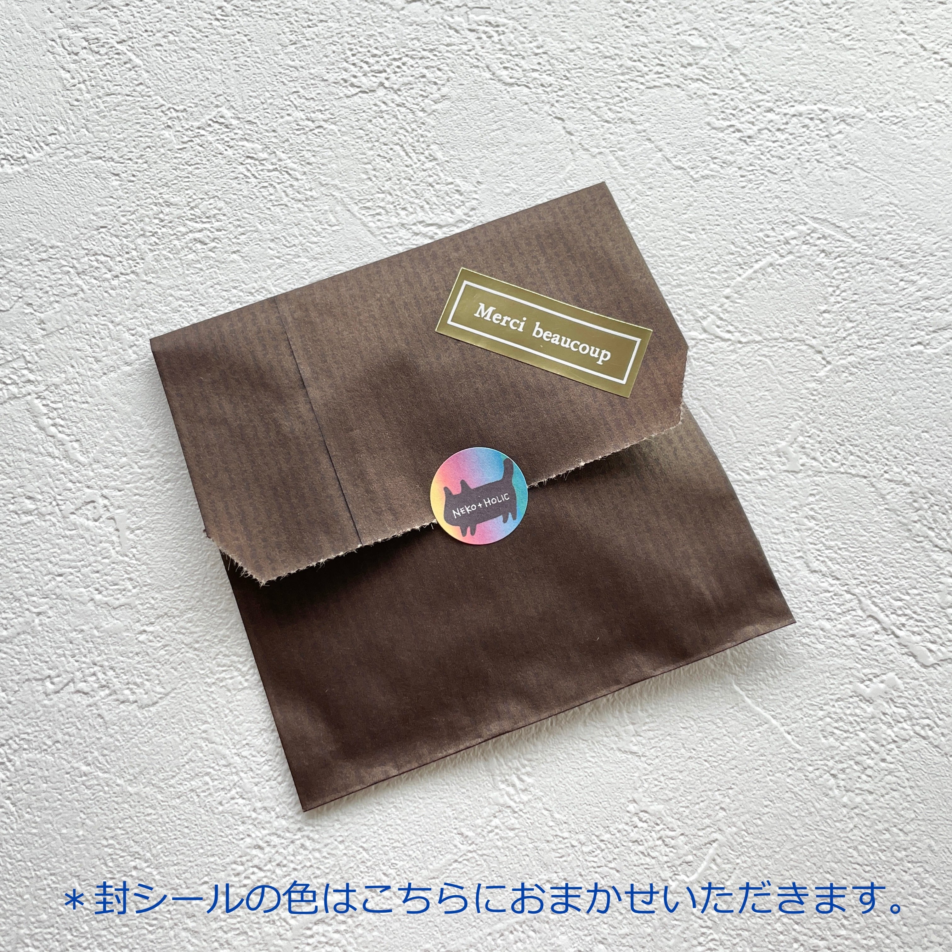 お渡し用の袋とシールをセットにした、簡易ラッピングセットは無料でおつけいたします。